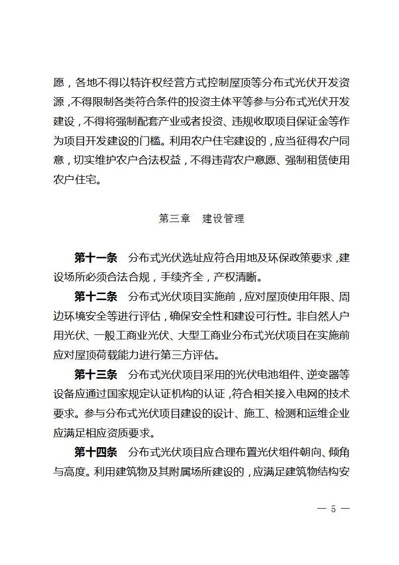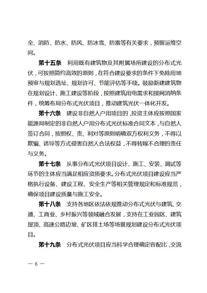 文件明确,分布式光伏项目实施前,应对屋顶使用年限、周边环境安全等进行评估,确保安全性和建设可行性。非自然人户用光伏、一般工商业光伏、大型工商业分布式光伏项目在实施前应对屋顶荷载能力进行第三方评估。
