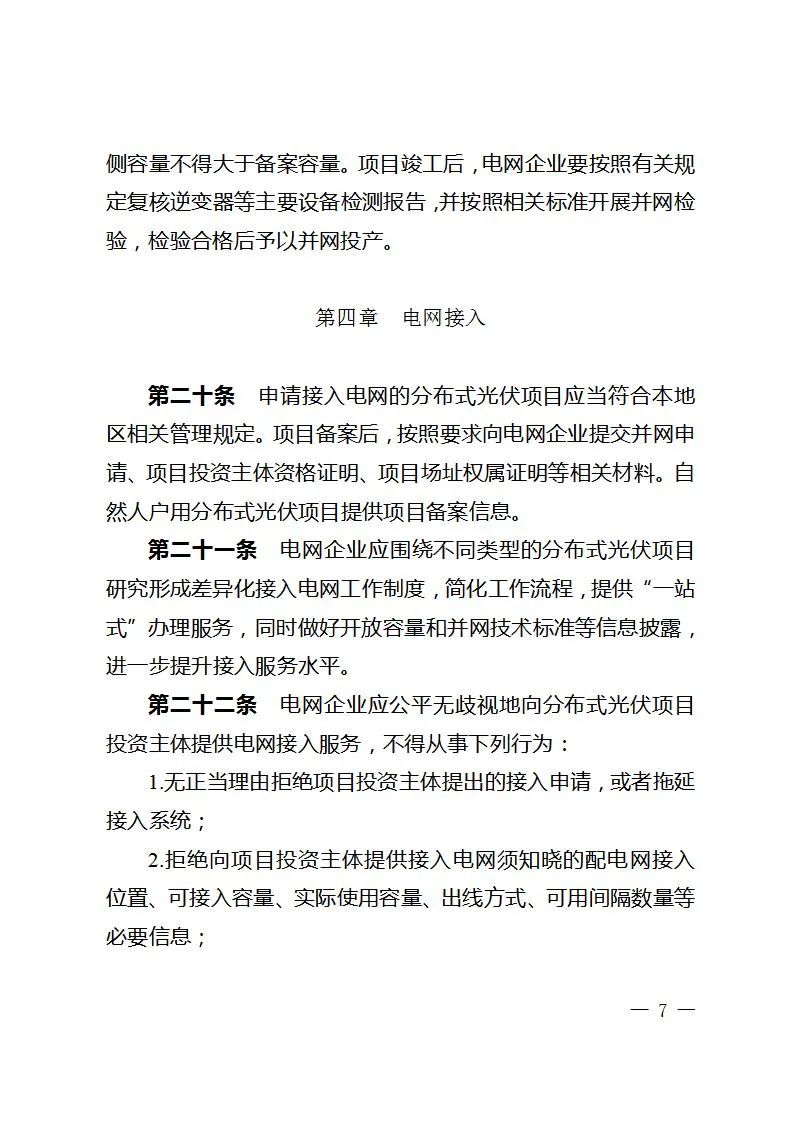 自然人户用分布式光伏项目由电网企业免费提供接入系统相关方案,其他分布式光伏项目应按规定开展接入系统设计,鼓励非自然人户用分布式光伏以集中汇流方式接入电网。